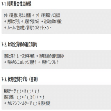 インフレ目標・独立中央銀行・財政ルール(中期枠組み)など、コミットメント装置の設計。
