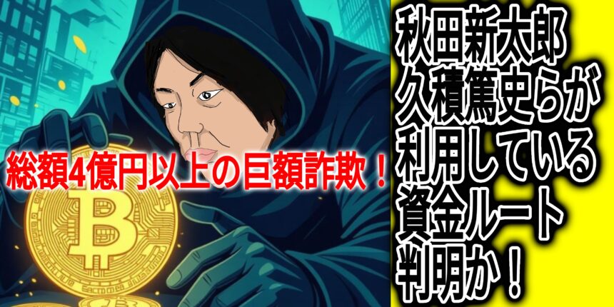このQコインを巡っては、久積氏が「木村」と偽名を用い、山中裕氏やつばさの党・黒川敦彦氏が代表を務める「投資ブラザーズ」の社員に対して、サトウ氏口座への入金を指示していた。被害はQコイン詐欺にとどまらず、暗号資産運用を名目とする別件の詐欺でも約3億円が失われており、合わせて今年だけで総額4億円規模に及んでいる。