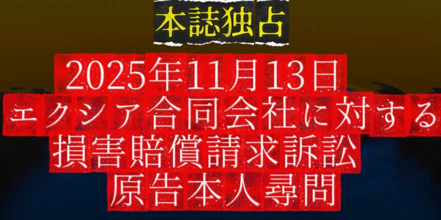 2025年11月13日、東京地方裁判所305号室(ビジネスコート3階)において、エクシア合同会社を被告とする損害賠償請求事件(事件番号:令和5年(ワ)第70043号)の審理が行われ、原告の弁論(本人尋問)が実施された。