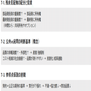 PPP/PFI や指定管理者制度の契約設計:品質測定不能部分が大きいサービスは直営/厳格な品質条項に。