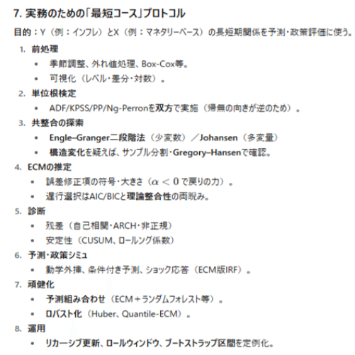 A:長期関係を重視し、政策シミュや裁定に使うなら VECM/ECM。純粋な短期予測ならVAR や ML での組み合わせが強いことも多い。