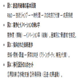 キーワード:創造的破壊/一時的独占利潤/倒 U 字(競争とイノベーション)/指向された技術進歩/新陳代謝(参入・退出)