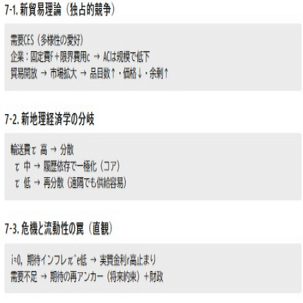 含意:比較優位に加え、市場規模・企業数・参入退出が貿易パターンを規定。貿易政策は 、単なる関税だけでなく競争政策・規格・知財に及ぶ。
