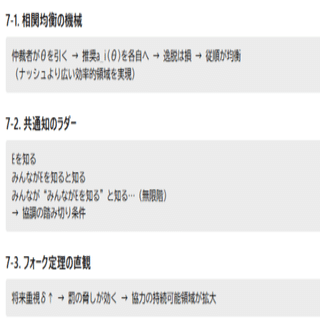 共通知の強さ:現実には高階の知識は近似で、誤信・注意の有限性がある(行動ゲームとの接続課題)。