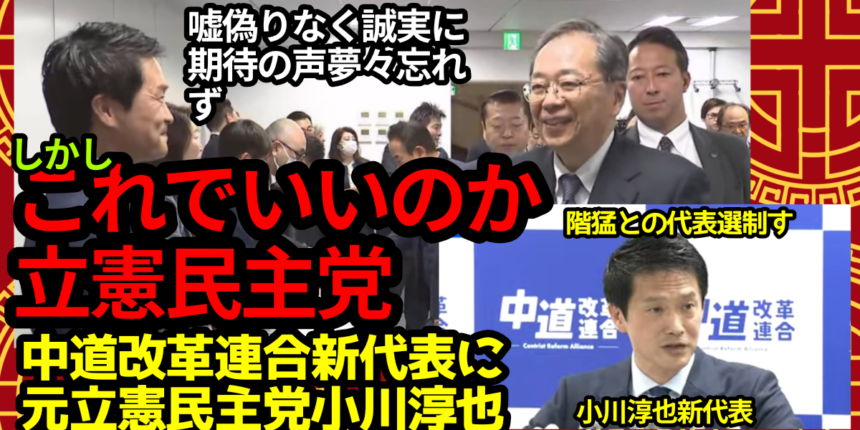 中道改革連合の代表選は2026年2月13日、東京・永田町の党本部で代表選挙、投開票が実施、49名の投票を受けて立憲民主党出身の小川淳也氏(54)=香川1区=27票が、同党出身の階(しな)猛氏(59)=岩手1区=22票を破って新代表に選出された。任期は2027年3月まで。