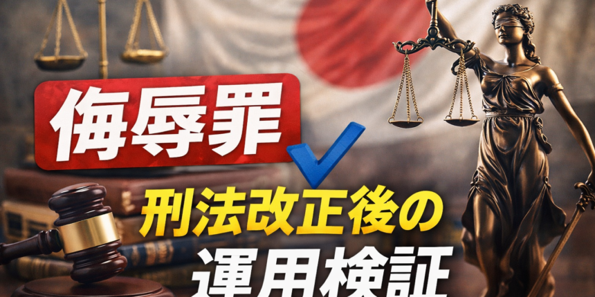 侮辱罪を巡っては、インターネット上での誹謗中傷を背景に見直しの議論が進み、2022年の刑法改正により、従来の拘留・科料に加え、懲役刑や罰金刑が導入された。改正法の付則では、施行後おおむね3年を経過した時点で、制度の検証を行うことが定められている。