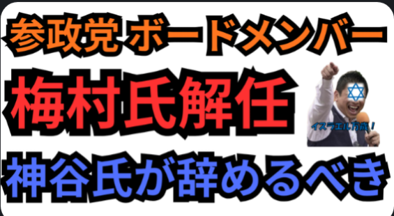 2025年11月、参政党は梅村みずほ議員をボードメンバー(役員)から解任した。