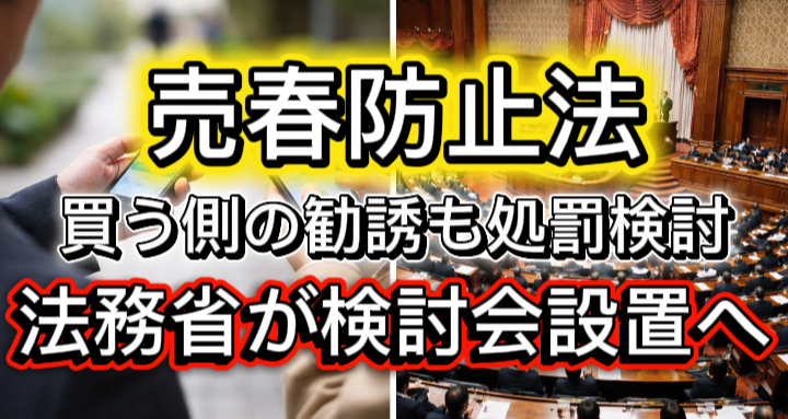 法務省は今回、買春をする側が売春を持ちかける行為についても、処罰の対象とすることが適切かどうかを検討する。検討会では、現行法の規定や運用状況を踏まえ、法改正の必要性や制度設計について議論が行われる予定だ。