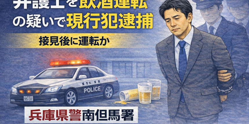 兵庫県警南但馬署は1日、飲酒運転をしたとして、豊岡市三坂町の弁護士、野崎佑也容疑者(43)を**道路交通法違反(酒気帯び運転)**の疑いで現行犯逮捕したと発表した。野崎容疑者は容疑を認めているという。