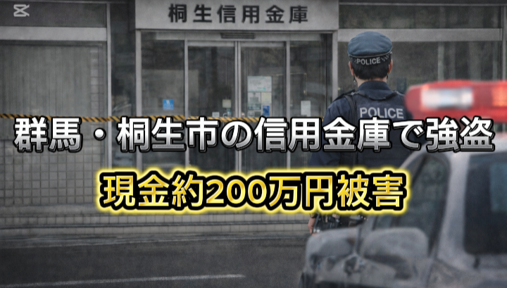群馬県桐生市の信用金庫で2日、強盗事件があり、男1人が現金を奪って逃走した。警察が強盗事件として捜査を進めている。