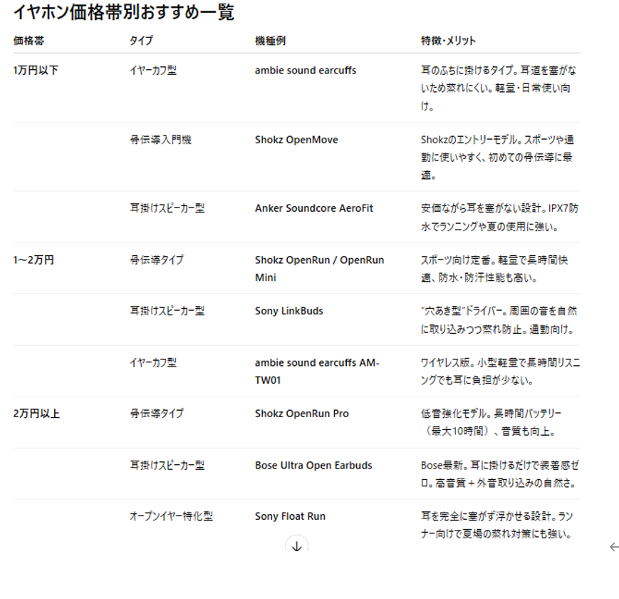 → 耳を塞がず、自然な音質。ランナー向け。