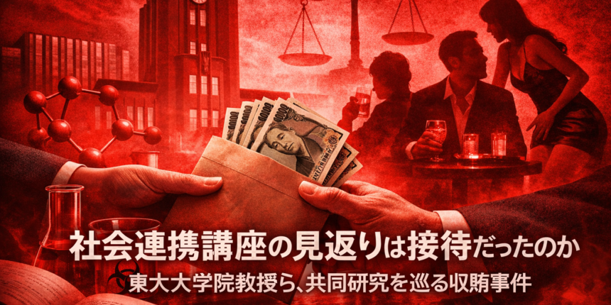 東京大学大学院の社会連携講座を巡り、共同研究の運営上の便宜と引き換えに高額な接待を受けた疑いが明らかになった。警視庁は2026年1月26日、東京大学大学院教授で医師の**佐藤伸一**容疑者(62)を収賄容疑で東京地検に送検した。