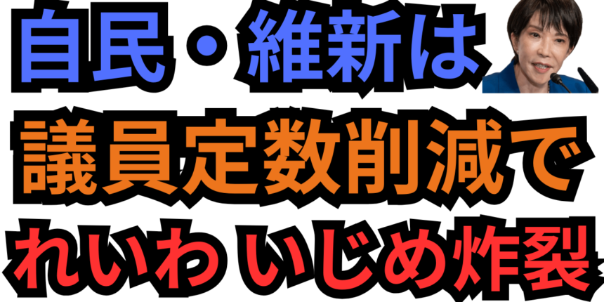 この流れが一気に可視化されたのは10月、日本維新の会が連立の絶対条件として掲げた“議員定数1割削減”を、自民党が 「連立合意書」 に明記したことが発端である。