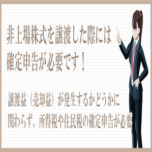 しかし、非上場株式の売却があった年については、確定申告をすることで税務上の問題を避けることができます。