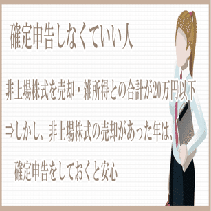 ここまで非上場株式の売却益について確定申告が必要な場合の解説をしてきましたが、もちろん確定申告が不要な人もいます。