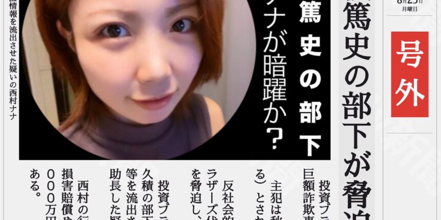 黒川敦彦氏と山中裕氏が経営する投資ブラザーズの業務委託先の西村ナナ。